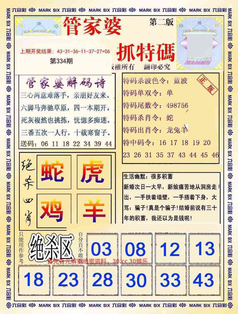 337期:绝杀三肖【虎-牛-猪】开:鸡09准