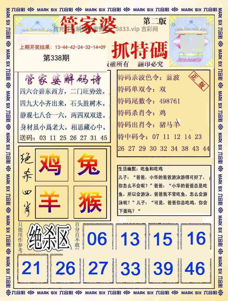 339期:特码暗语/曾道人救世心经/攻特料/六合心经/平码生肖点将